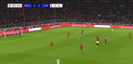 在第84分钟,萨拉赫击中禁区右肋的禁区。马恩在球门前得分,利物浦3-1拜仁,马内梅开二度。