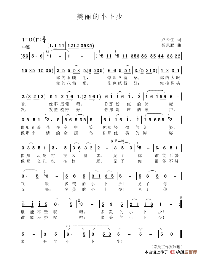 二胡乐谱曲谱 我的祖国(二胡二重奏 影片《上甘岭