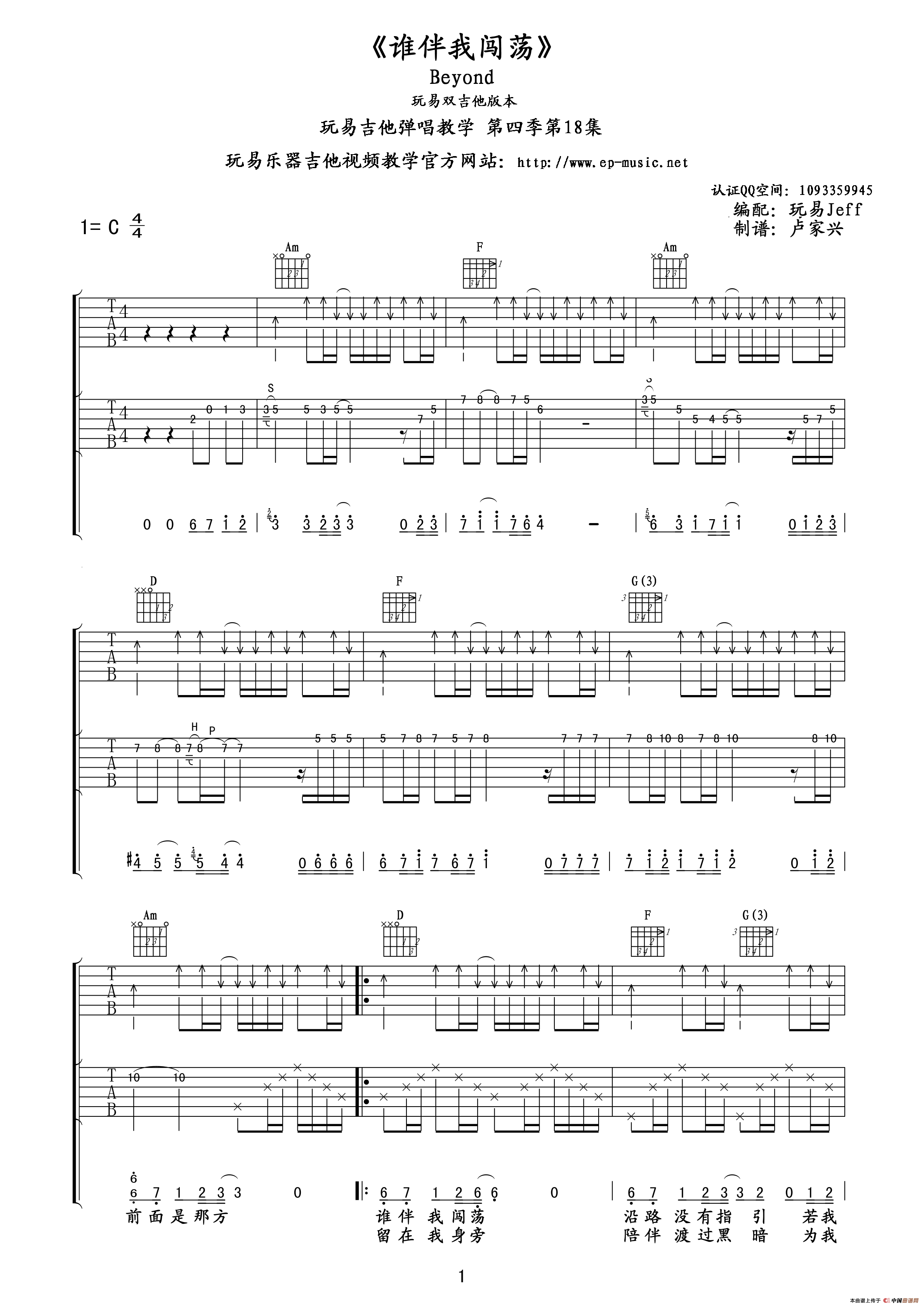 谁伴我闯荡 beyond(吉他谱)