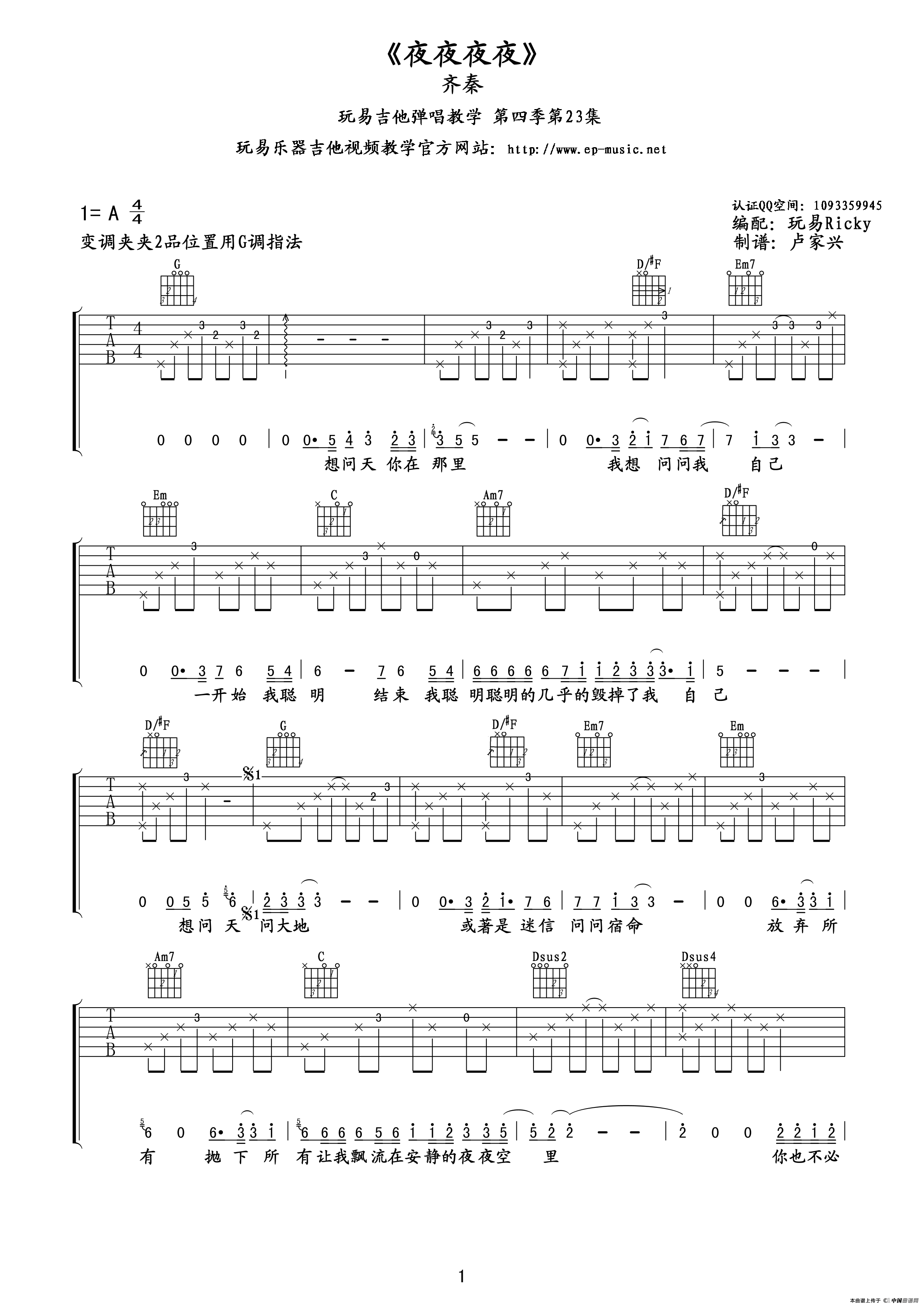 吉他谱乐谱 岁月神偷(C调指法编配 金玟岐演唱)