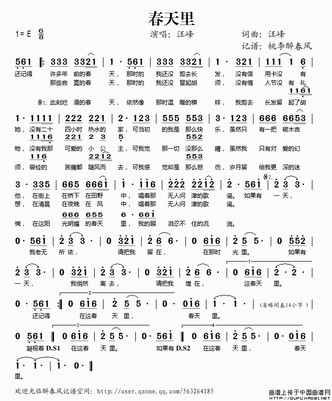 吉他谱乐谱 枫(周杰伦演唱 吉他弹唱六线谱)