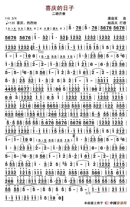 二胡乐谱曲谱 我的祖国(二胡二重奏 影片《上甘岭
