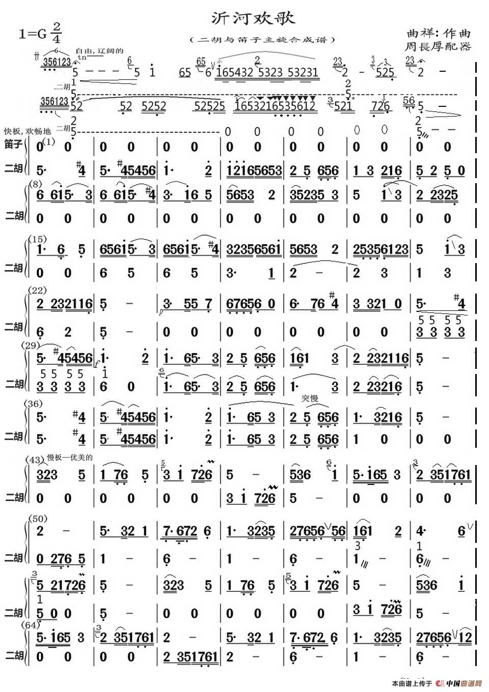 二胡乐谱曲谱 我的祖国(二胡二重奏 影片《上甘岭