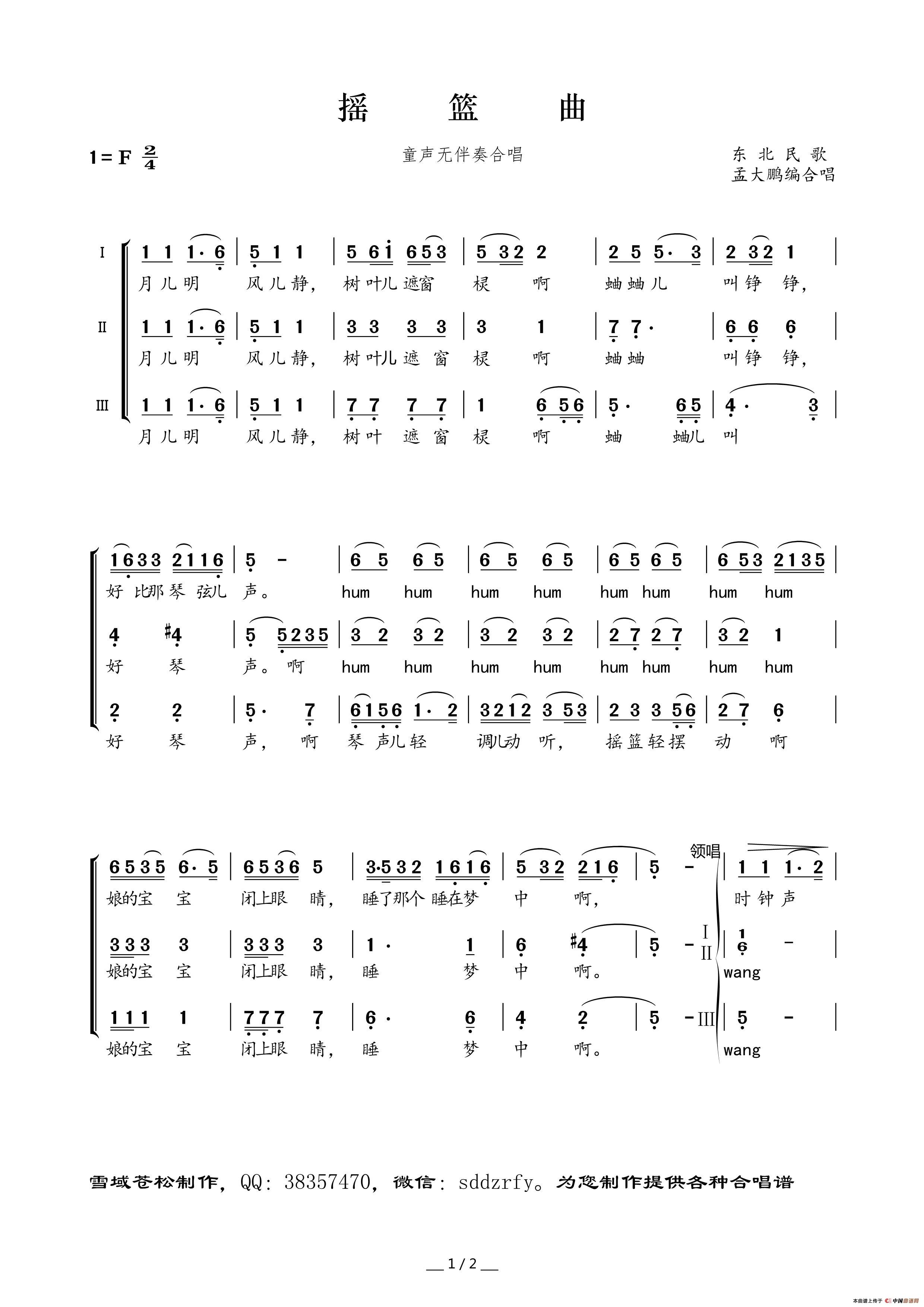 摇篮曲(东北民歌,孟大鹏改编、童声合唱)