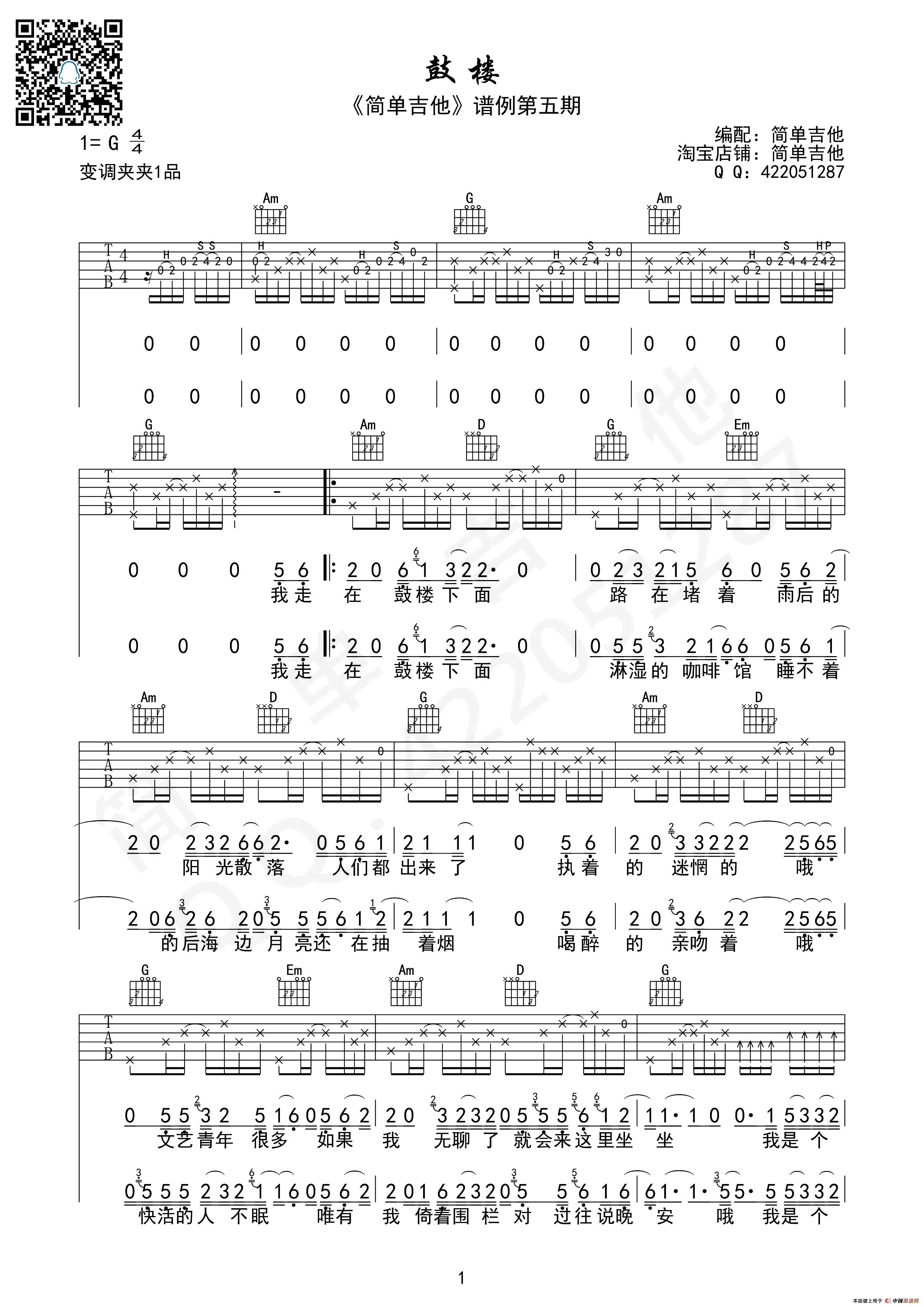 吉他谱乐谱 看月亮爬上来(张杰演唱 陆虎词曲)