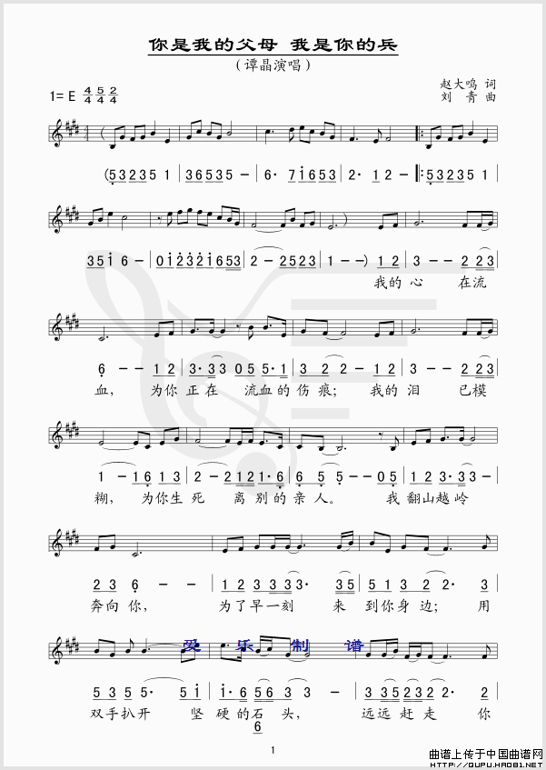 二胡乐谱曲谱 我的祖国(二胡二重奏 影片《上甘岭
