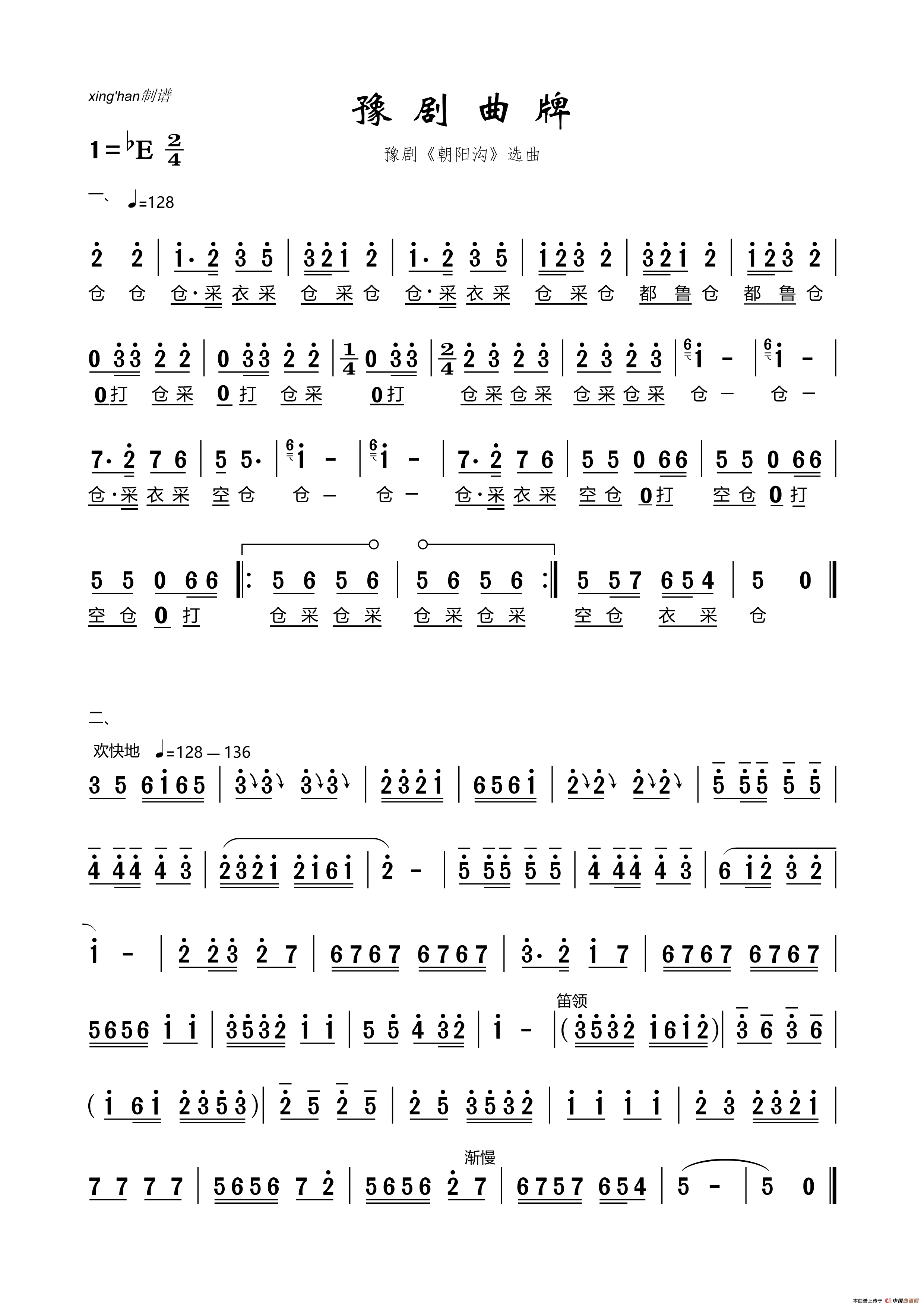 豫剧曲牌(豫剧《朝阳沟》选曲)