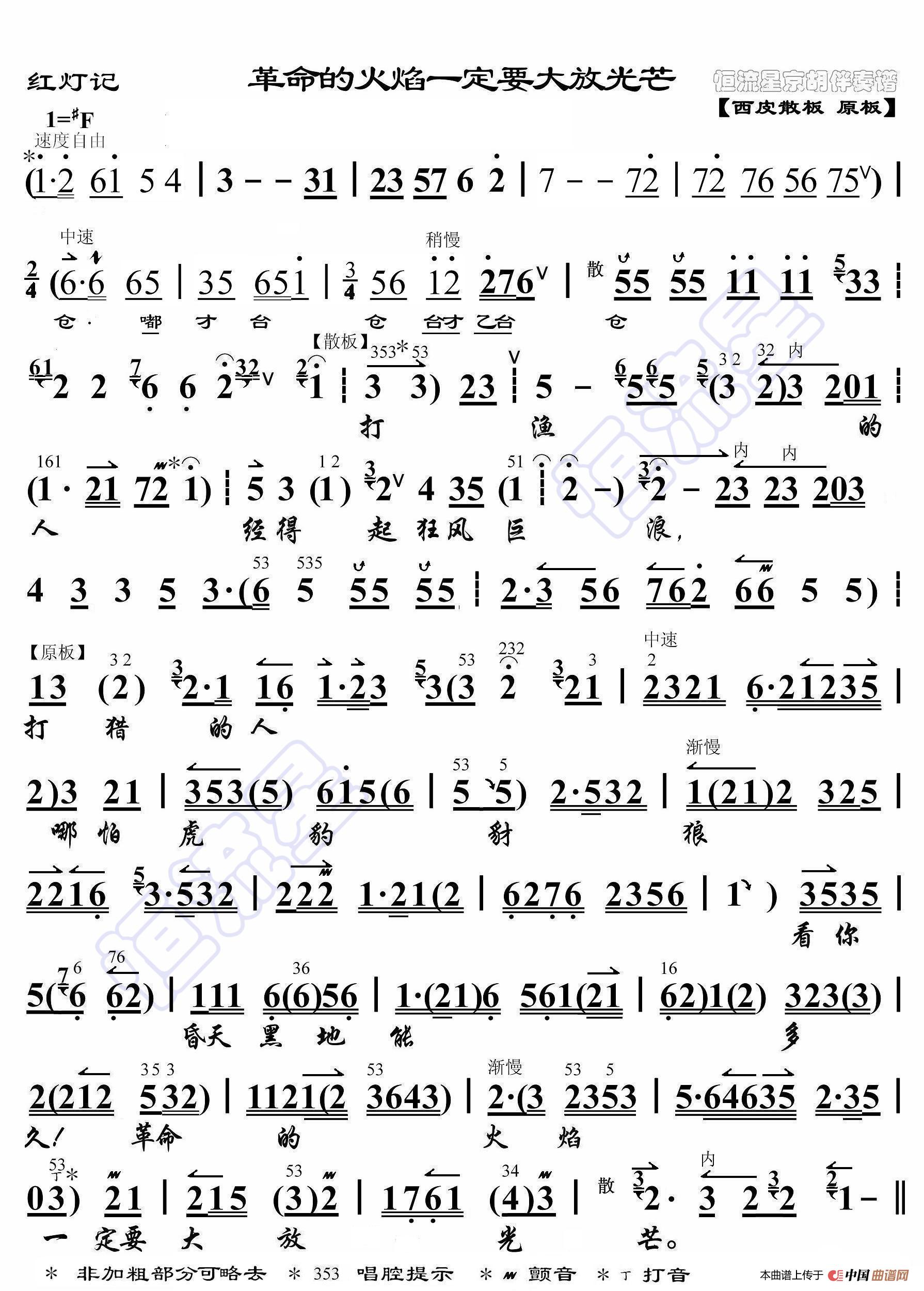 红灯记·革命的火焰一定要大放光芒(京胡伴奏谱