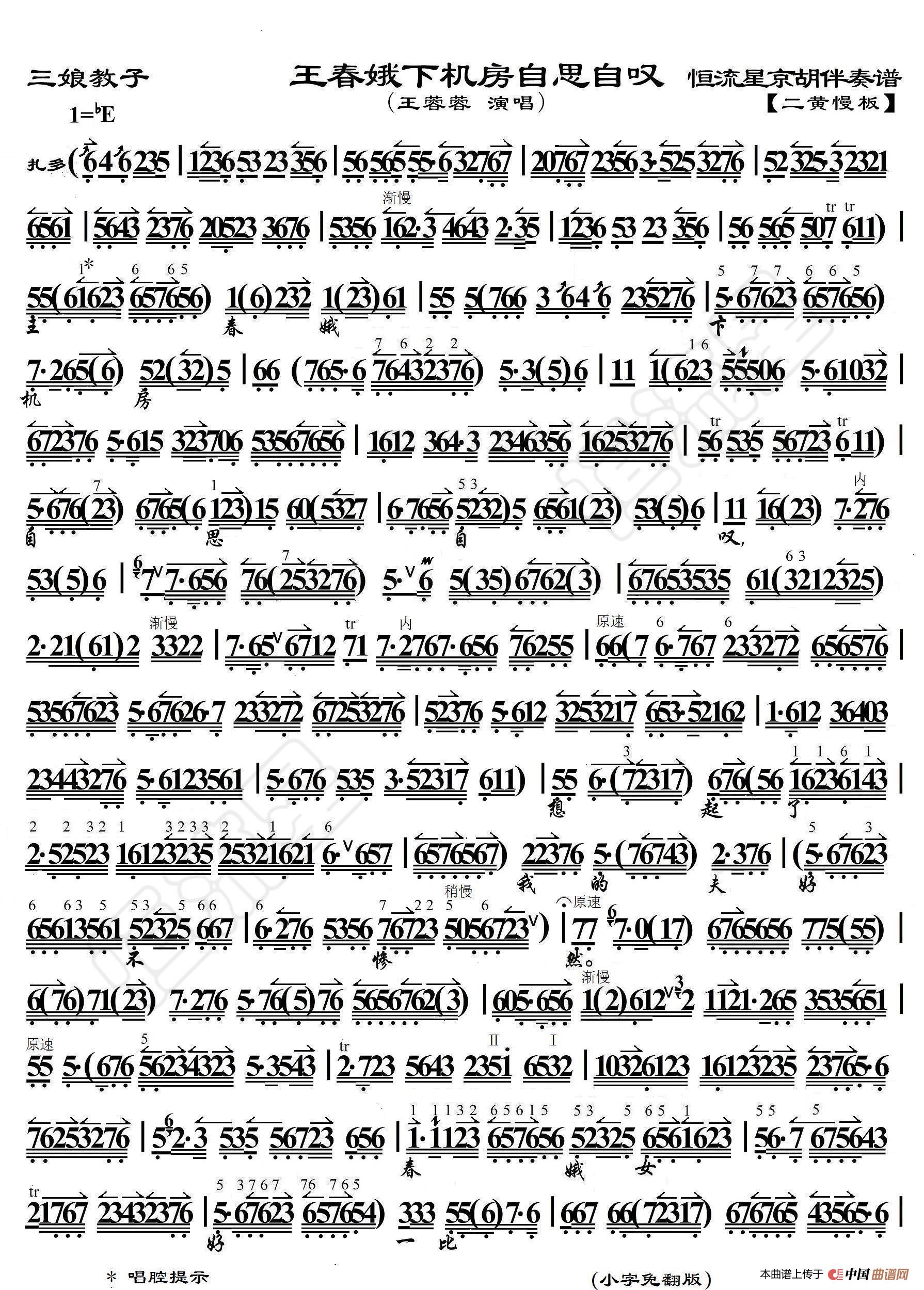 三娘教子·王春娥下机房自思自叹(京胡伴奏谱)