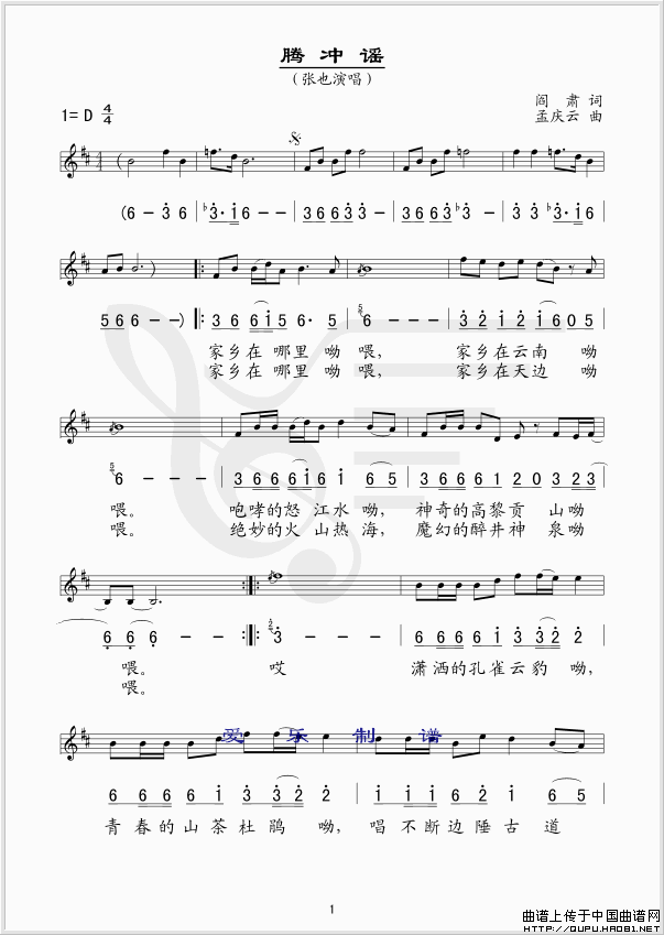 二胡乐谱曲谱 我的祖国(二胡二重奏 影片《上甘岭