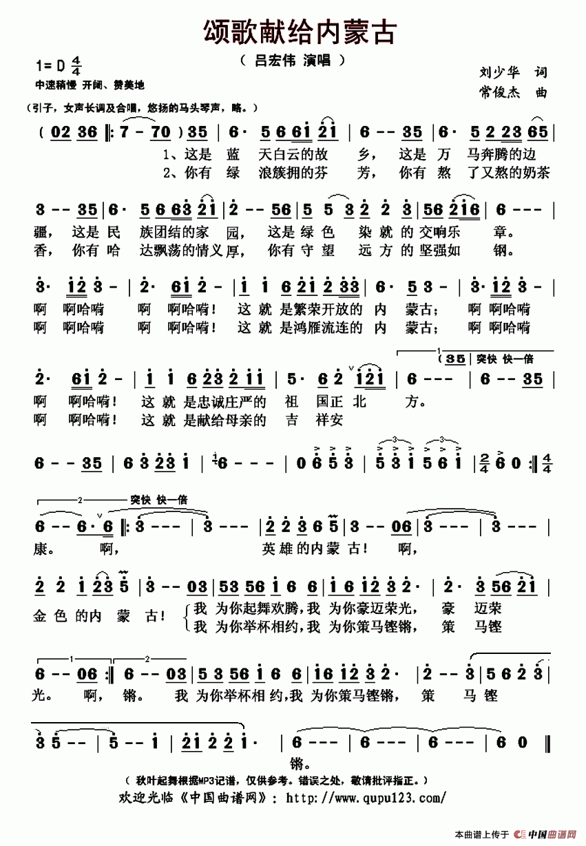 二胡乐谱曲谱 我的祖国(二胡二重奏 影片《上甘岭