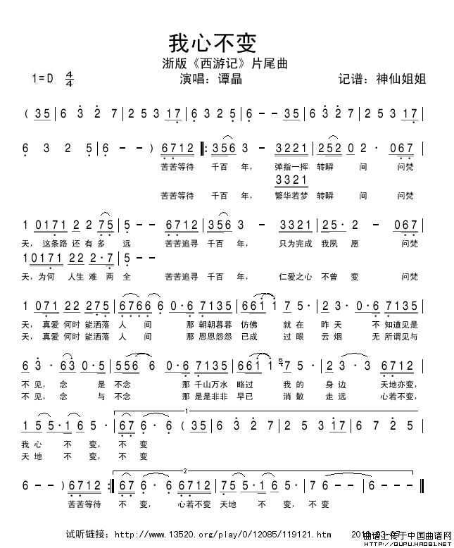 二胡乐谱曲谱 我心永恒(杰姆斯·奥斯曲)
