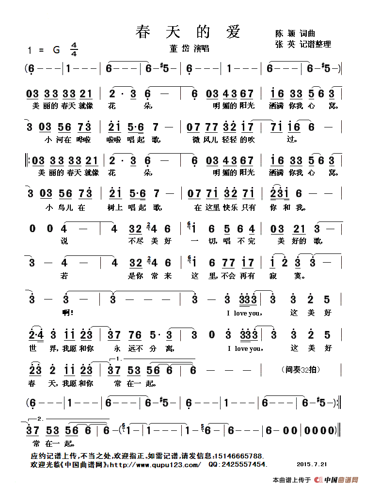 京剧戏曲谱 春风送暖桃花艳(京歌 刘春爱词曲)