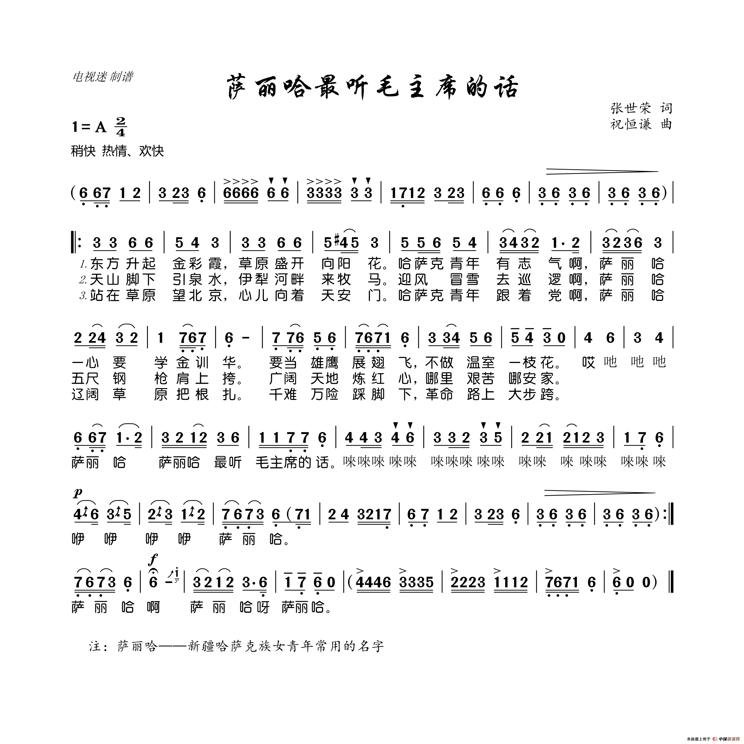 二胡乐谱曲谱 我的祖国(二胡二重奏 影片《上甘岭