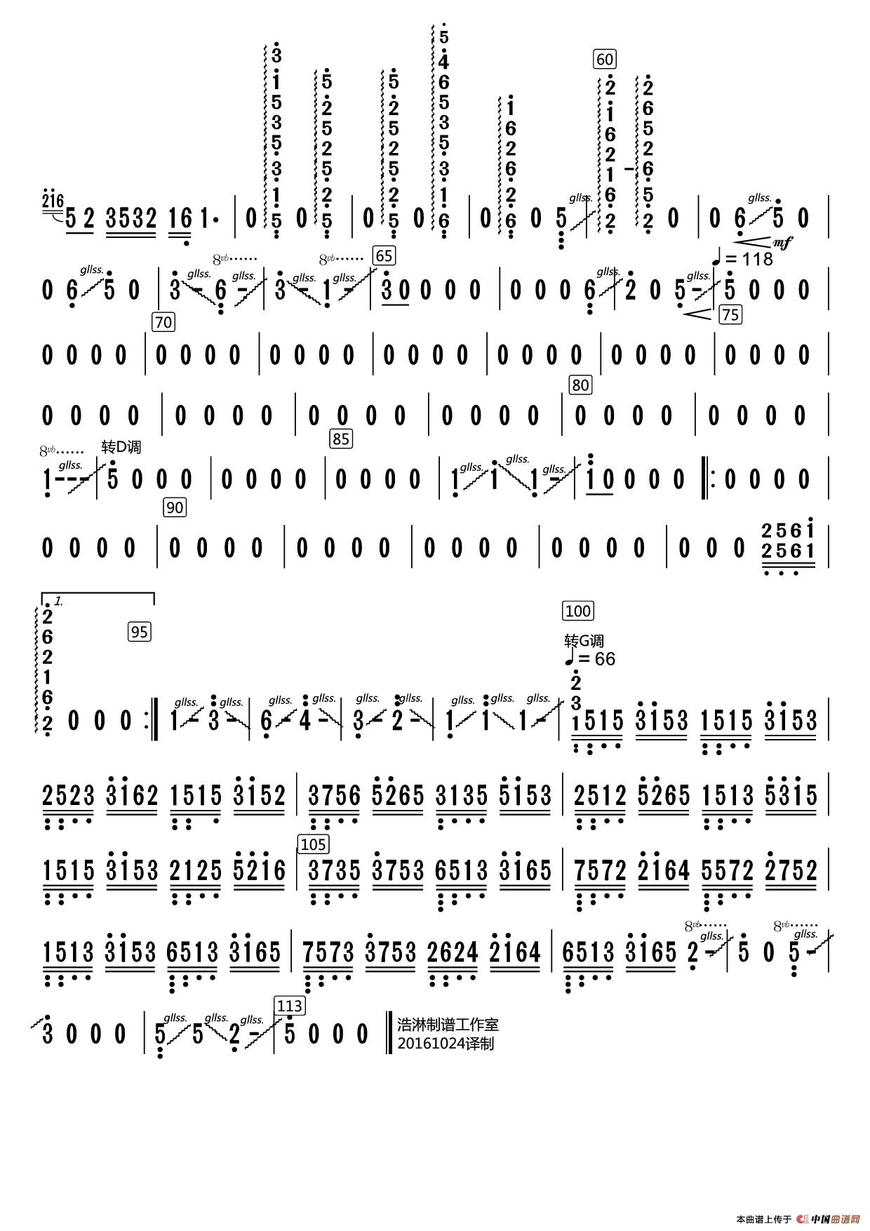 二胡乐谱曲谱 我的祖国(二胡二重奏 影片《上甘岭
