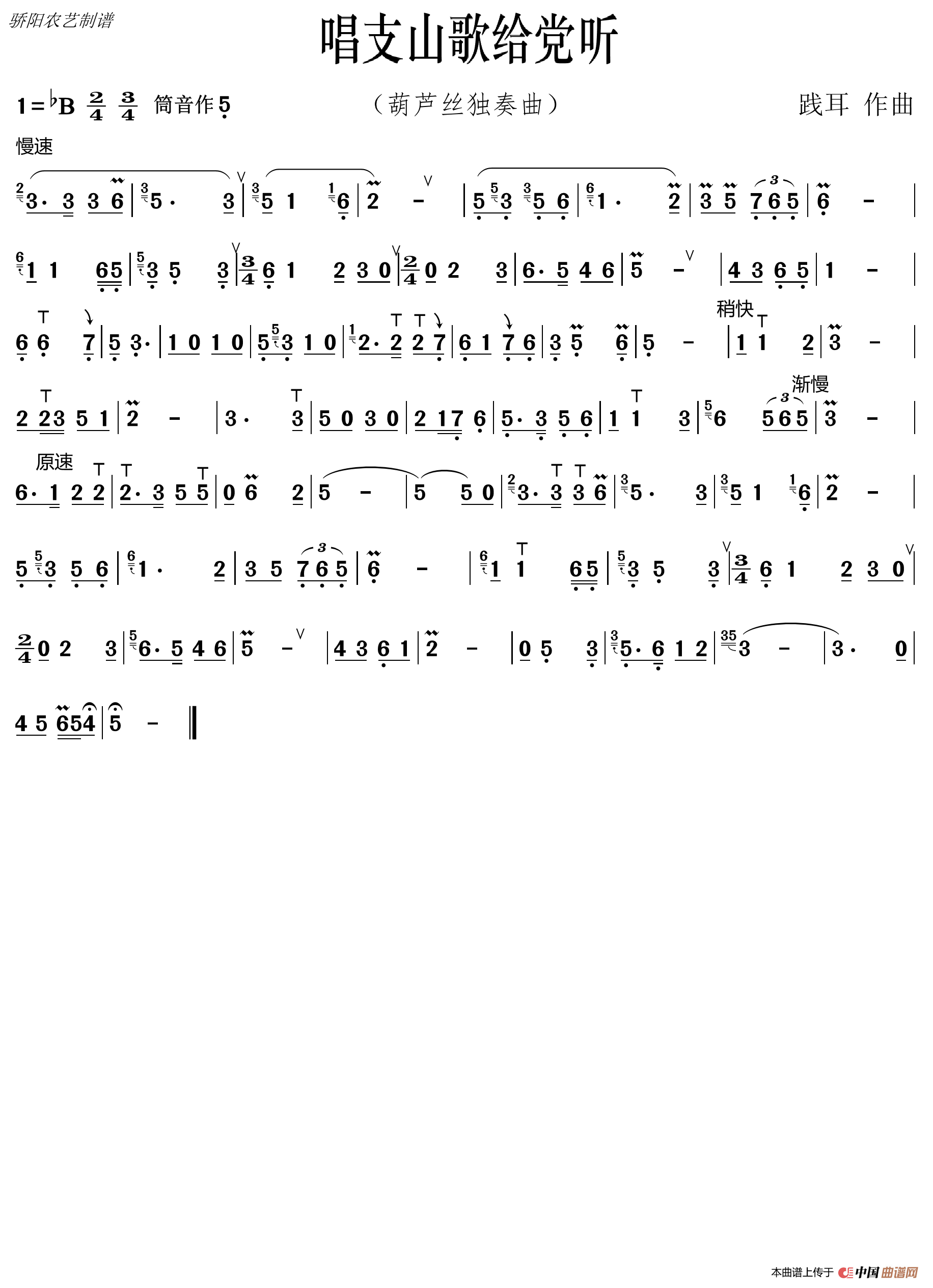 唱支山歌给党听(葫芦丝曲 有降B调伴奏)