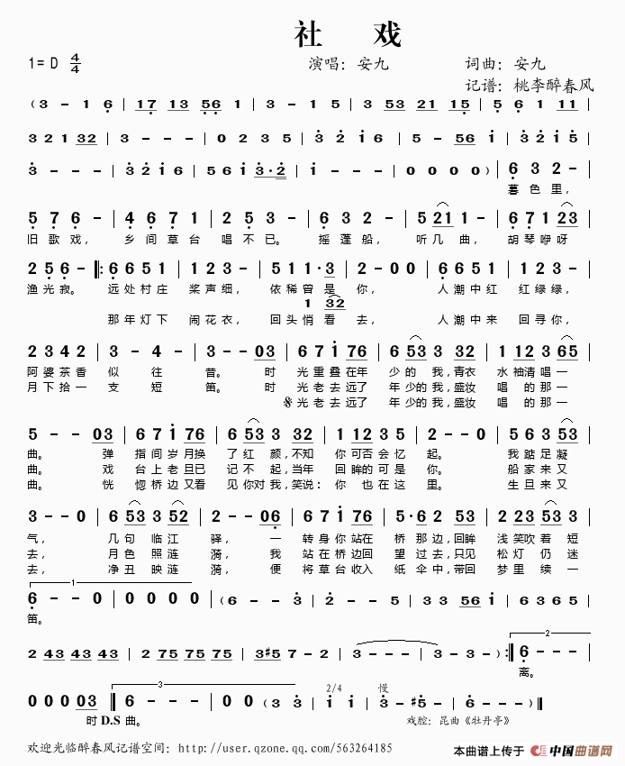 京剧戏曲谱 春风送暖桃花艳(京歌 刘春爱词曲)