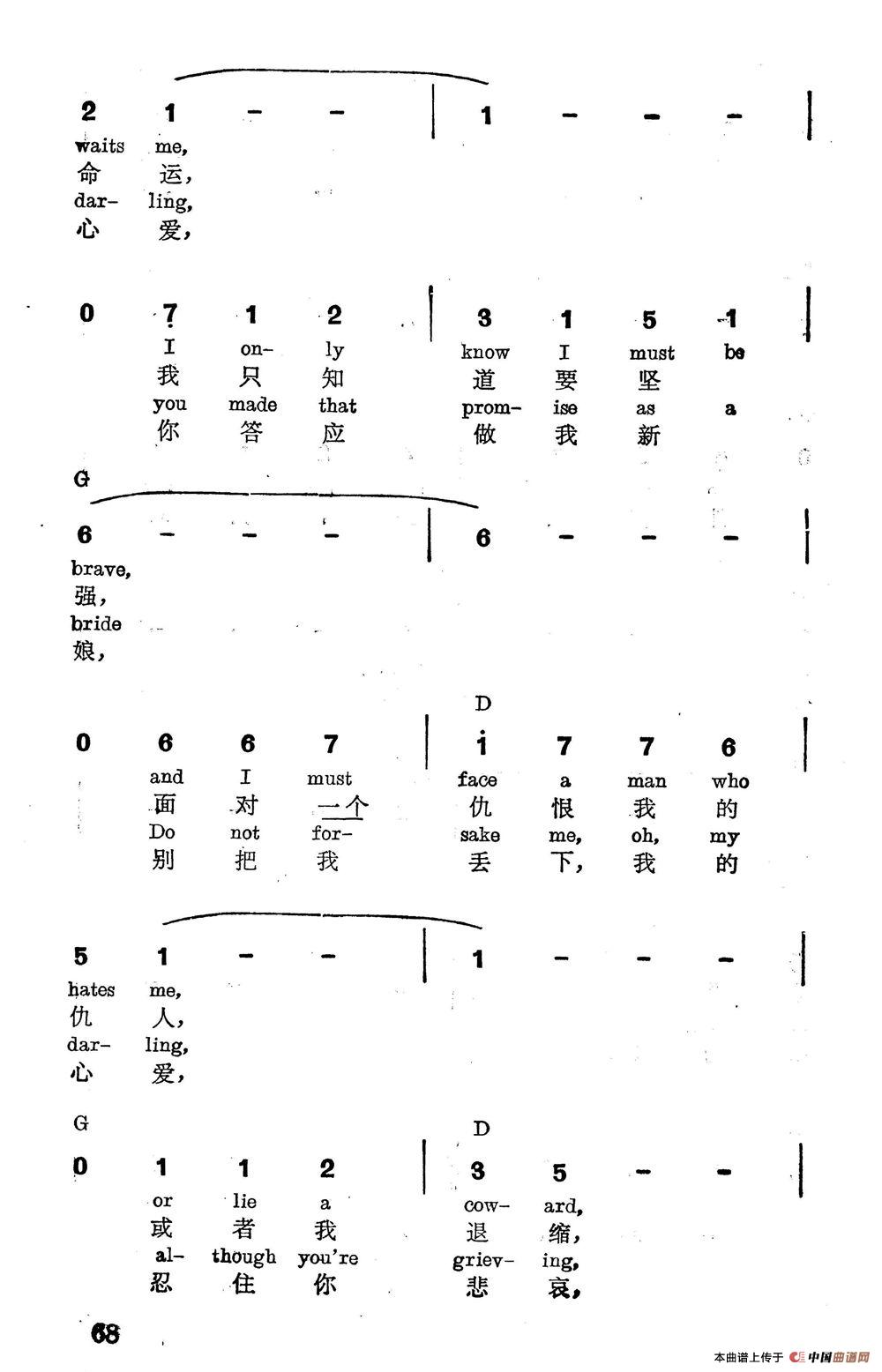 版本一:选自《奥斯卡金奖电影歌曲荟萃》,中英文对照,简谱版。