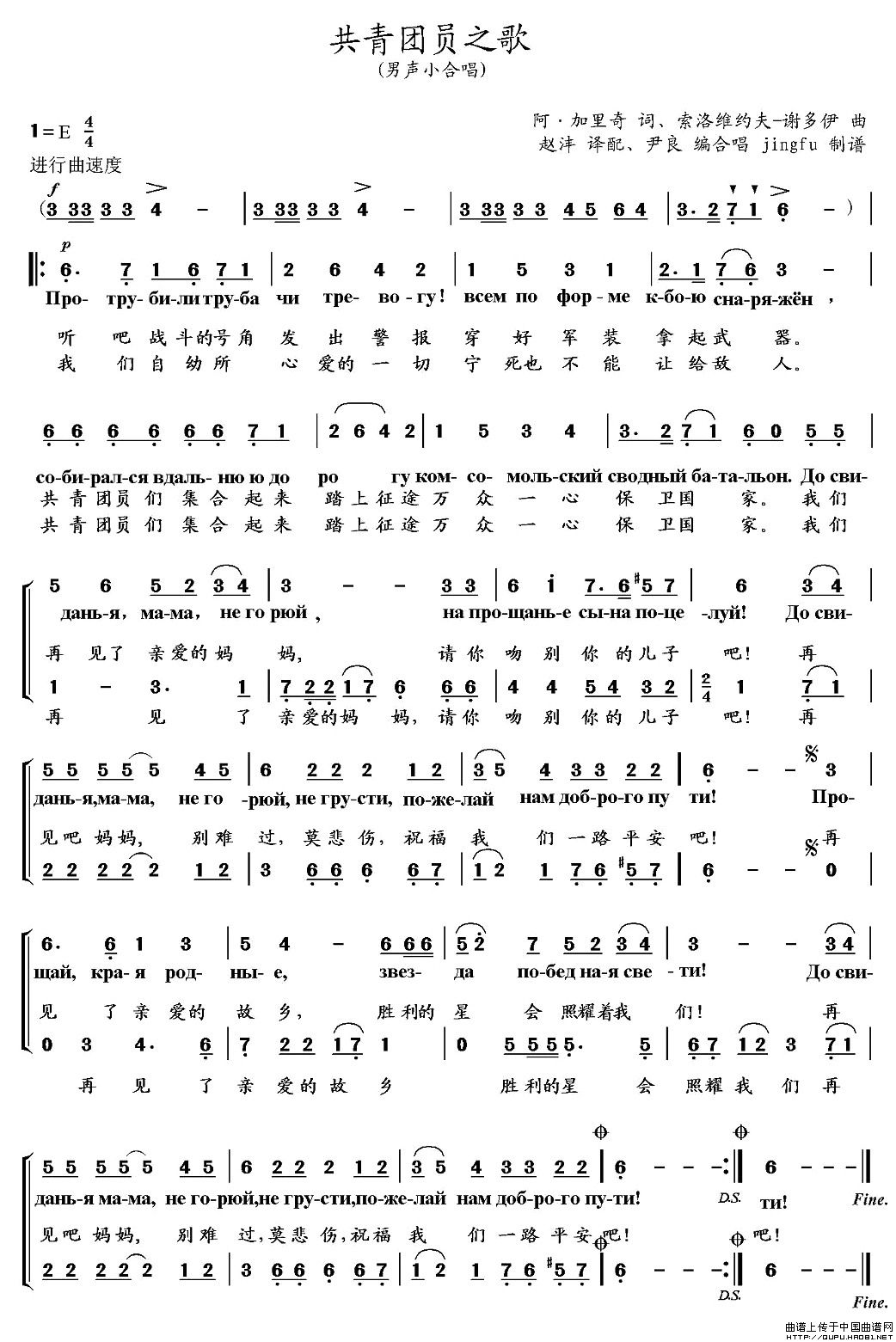 [前苏联]共青团员之歌(男声小合唱、中俄文对照)