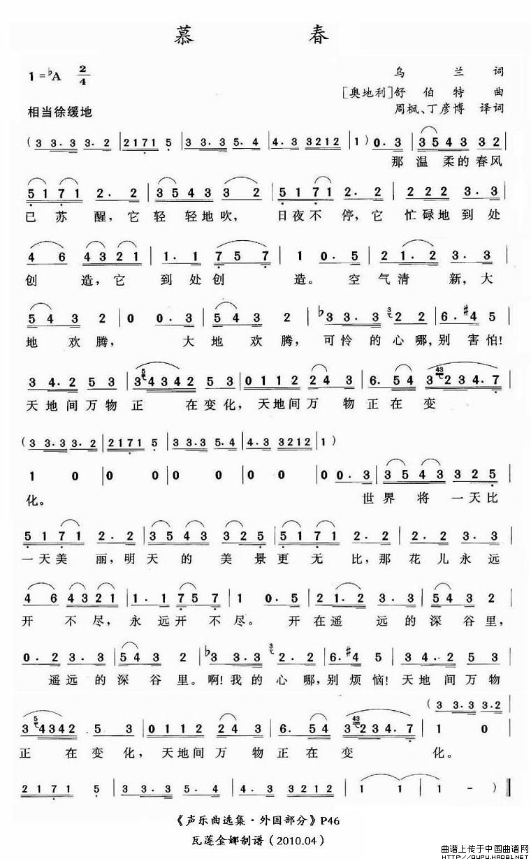 二胡乐谱曲谱 江南春色(朱昌耀、马熙林曲)