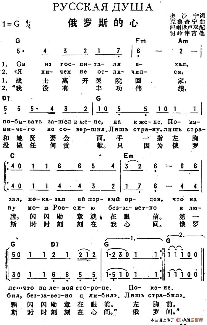 二胡乐谱曲谱 我的祖国(二胡二重奏 影片《上甘岭