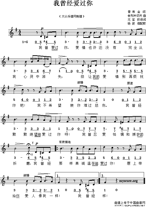 二胡乐谱曲谱 我的祖国(二胡二重奏 影片《上甘岭