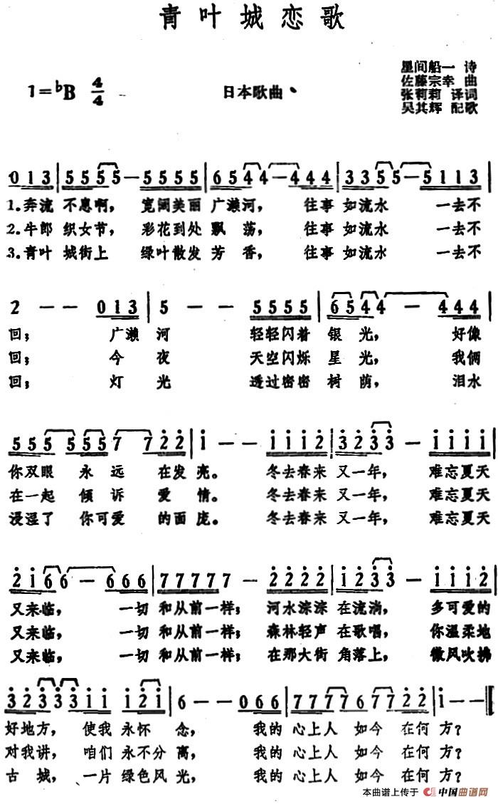 古筝古琴乐谱曲谱 天涯(陈没词 中岛美雪曲 弹唱谱