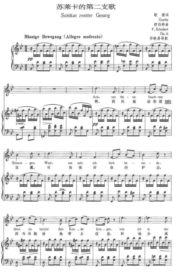 苏莱卡的第二支歌(中外文对照版、正谱 [奥])