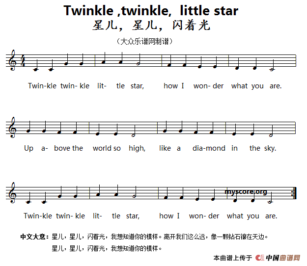 英文儿歌:Twinkle,twinkle,little star(星儿,星儿,闪着光)