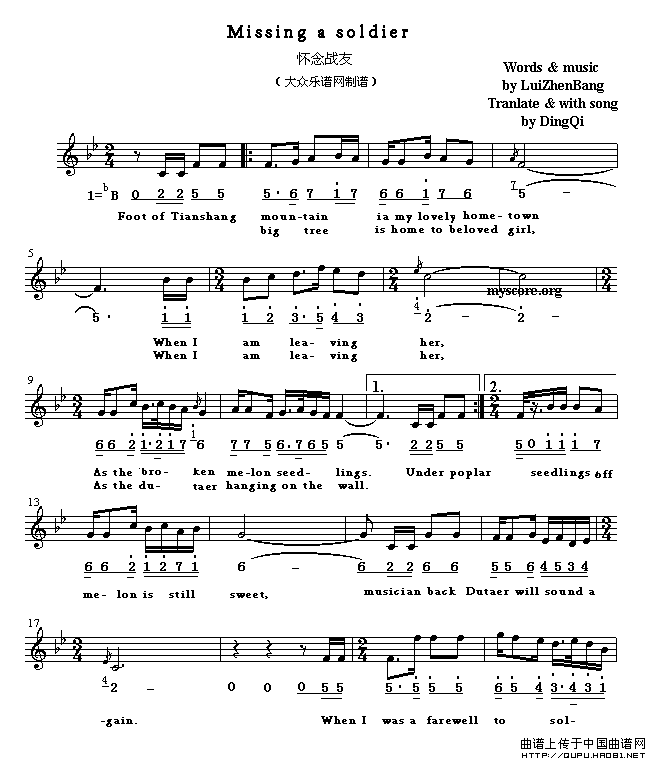 Missing a solder(怀念战友)(英译中文歌曲、线简谱混排版)