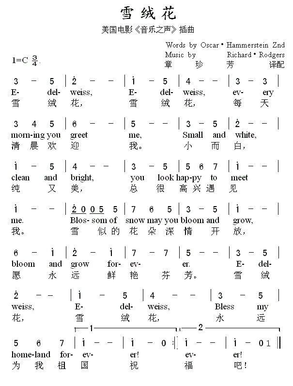 [美] 雪绒花(电影《音乐之声》插曲)