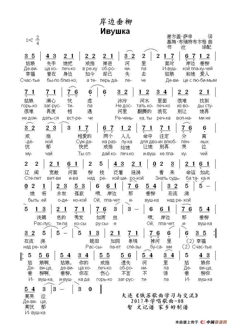 岸边垂柳 Ивушка(中俄简谱)