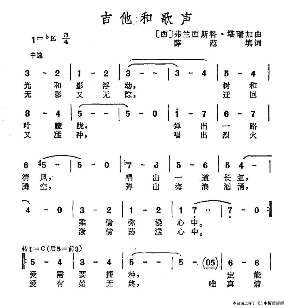 吉他谱乐谱 枫(周杰伦演唱 吉他弹唱六线谱)