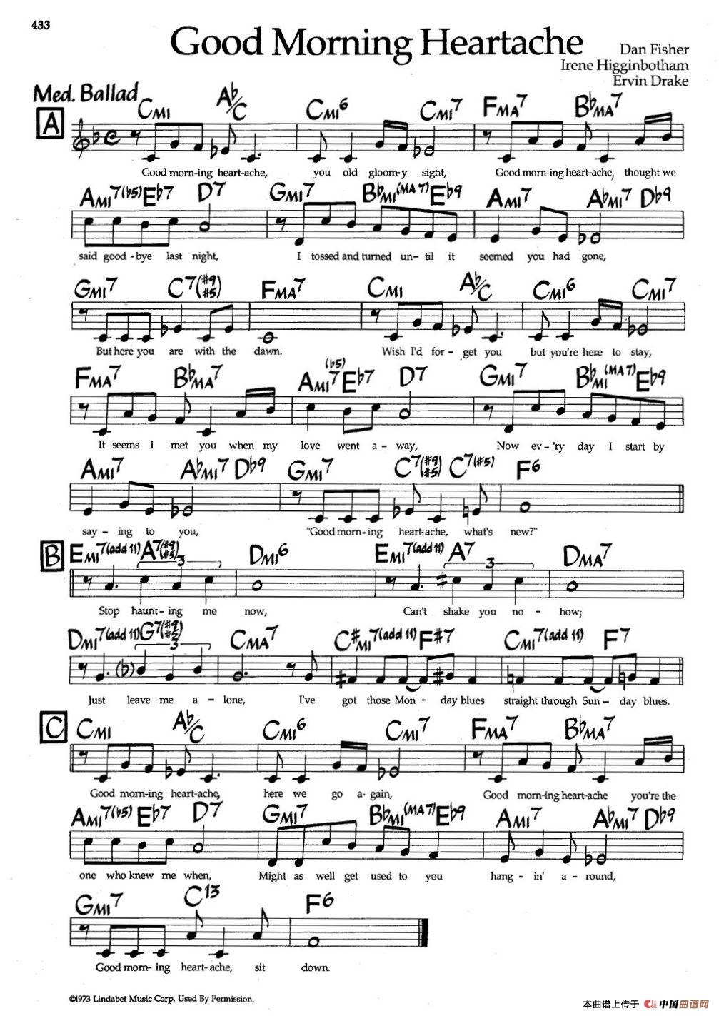 Good Morning Heartache(带和弦五线谱)