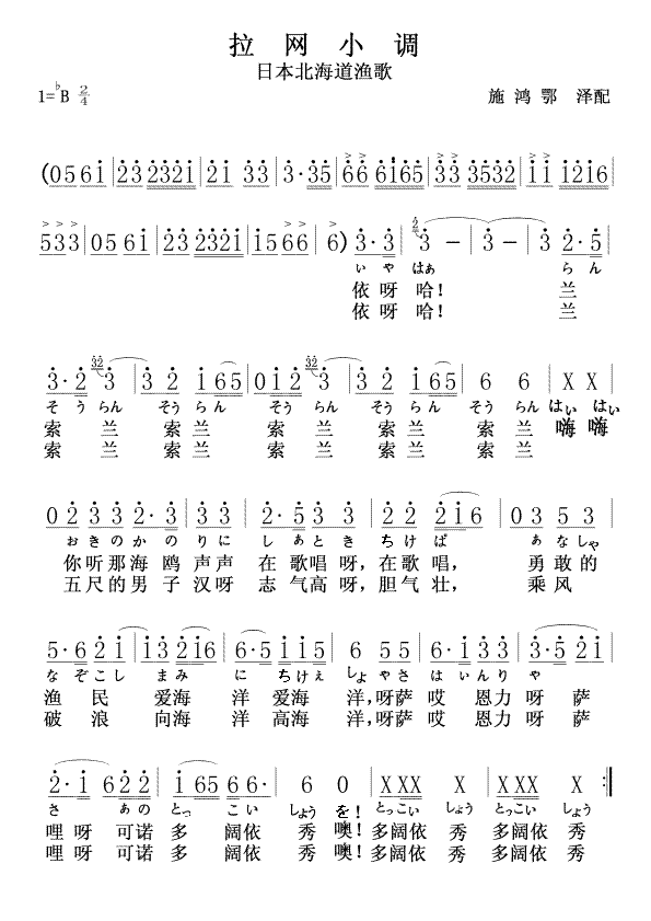 二胡乐谱曲谱 松花江上(张寒晖曲 王莉莉订谱)