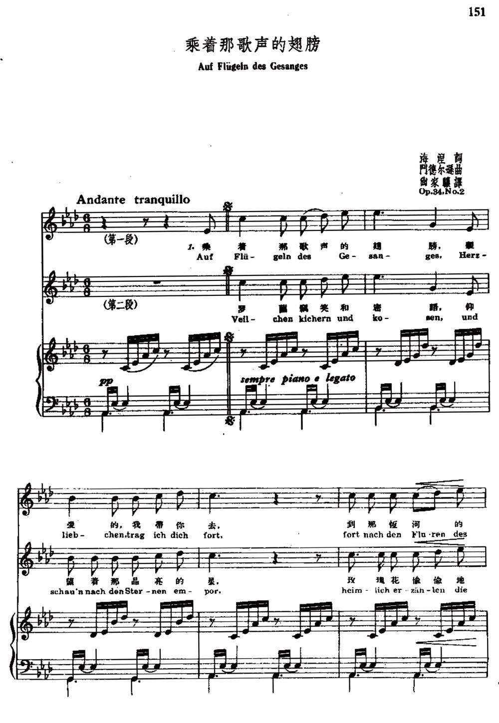 乘着歌声的翅膀(中外文对照、正谱)