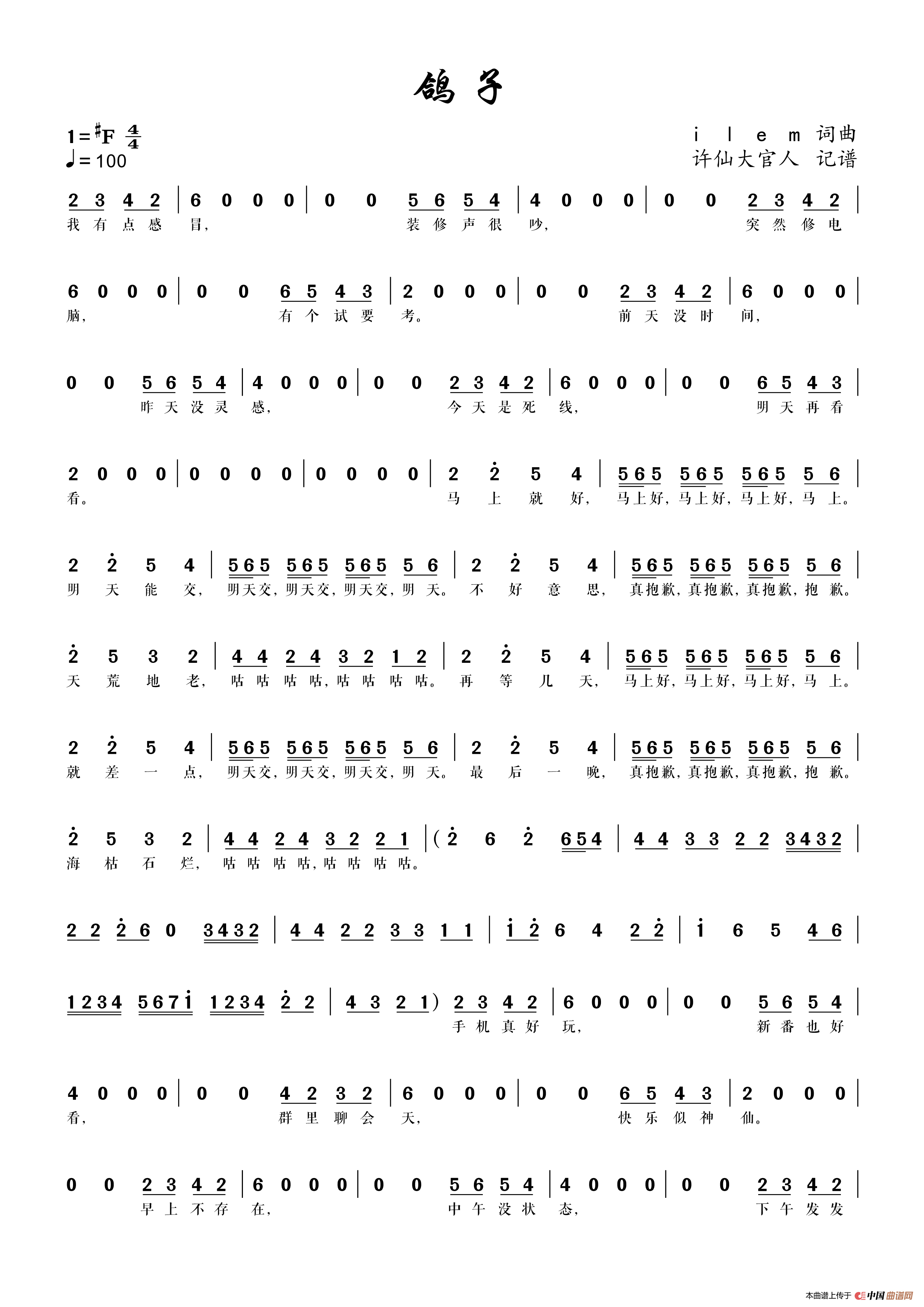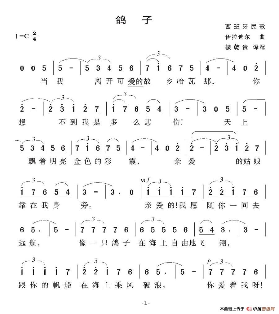 鸽子简谱 瓦莲金娜个人制谱园地 中国曲谱网