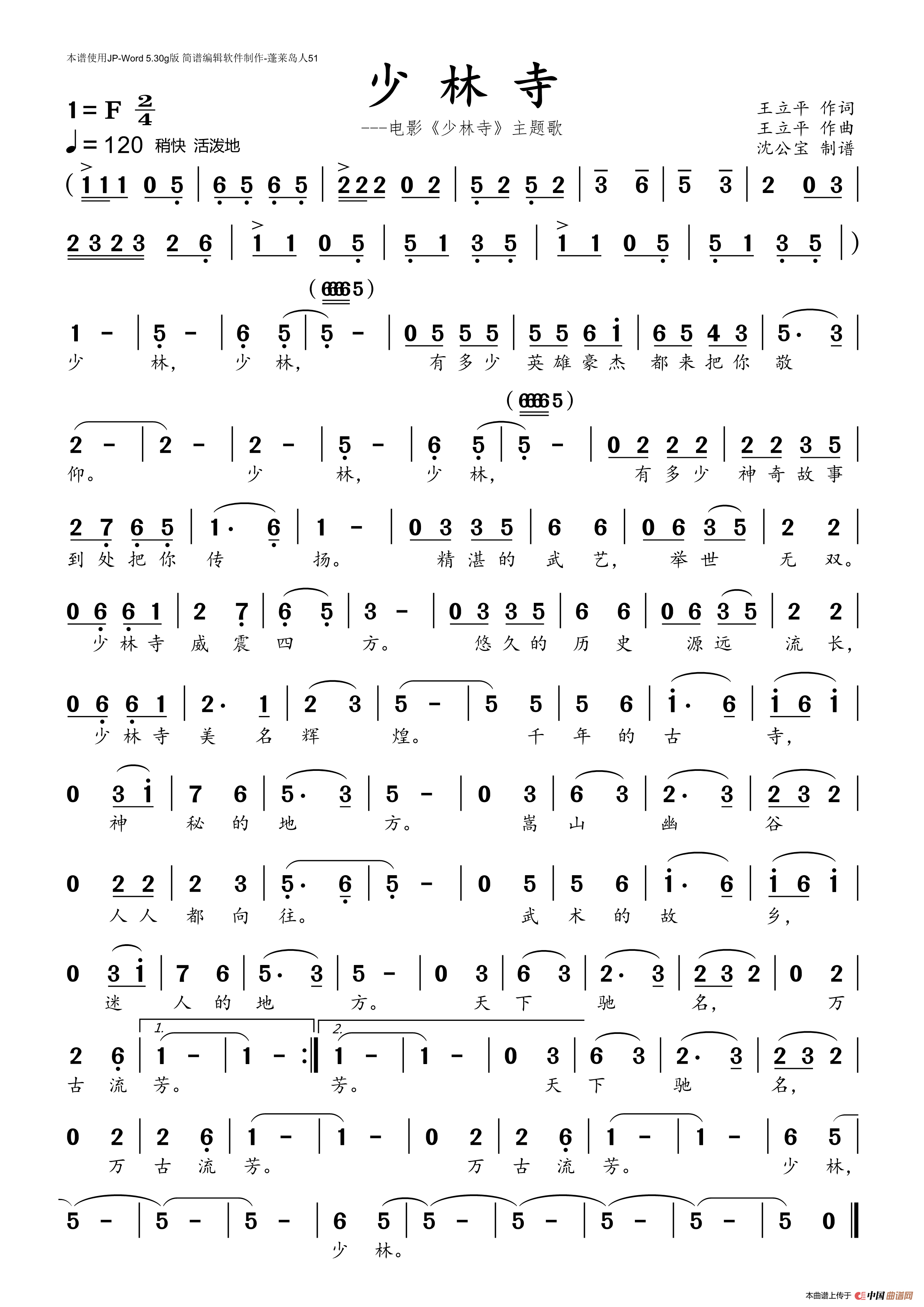 少林少林简谱_少林英雄简谱