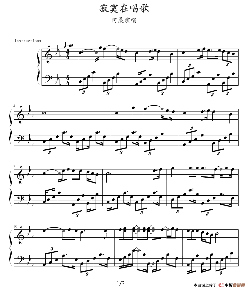 寂寞在唱歌钢琴谱 器乐乐谱 中国曲谱网
