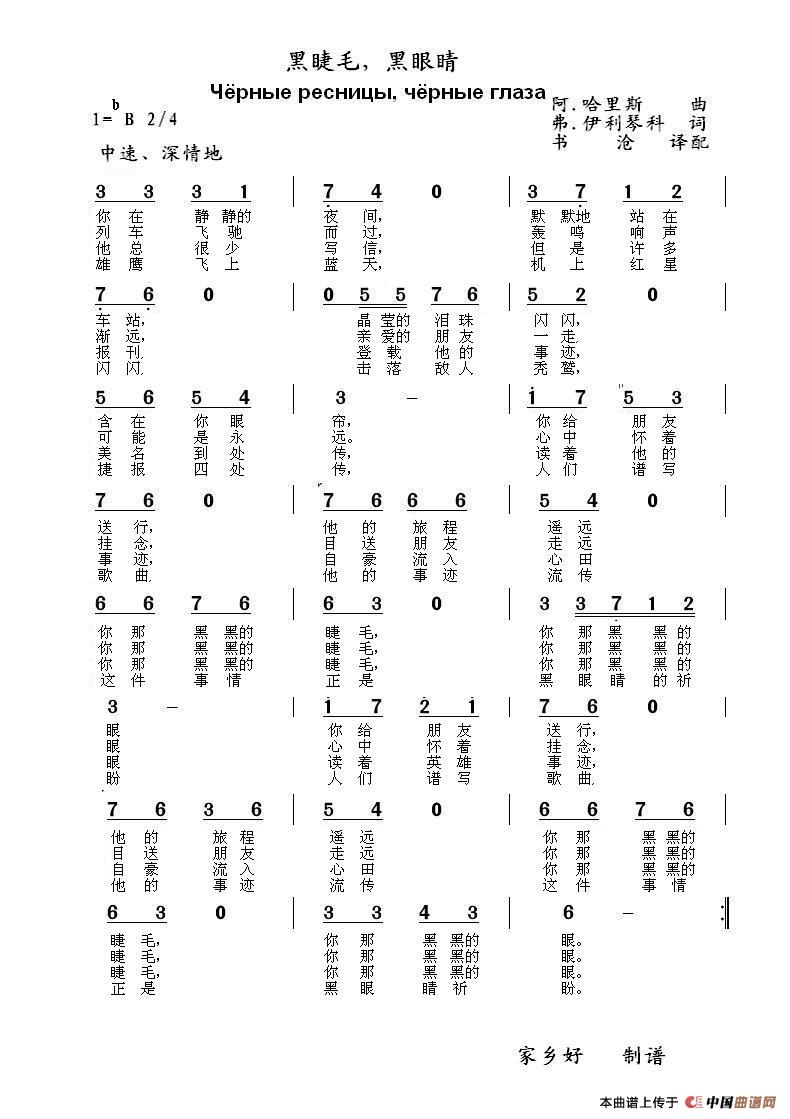 黑睫毛,黑眼睛Чёрные ресницы чёрные глаза 中俄简谱