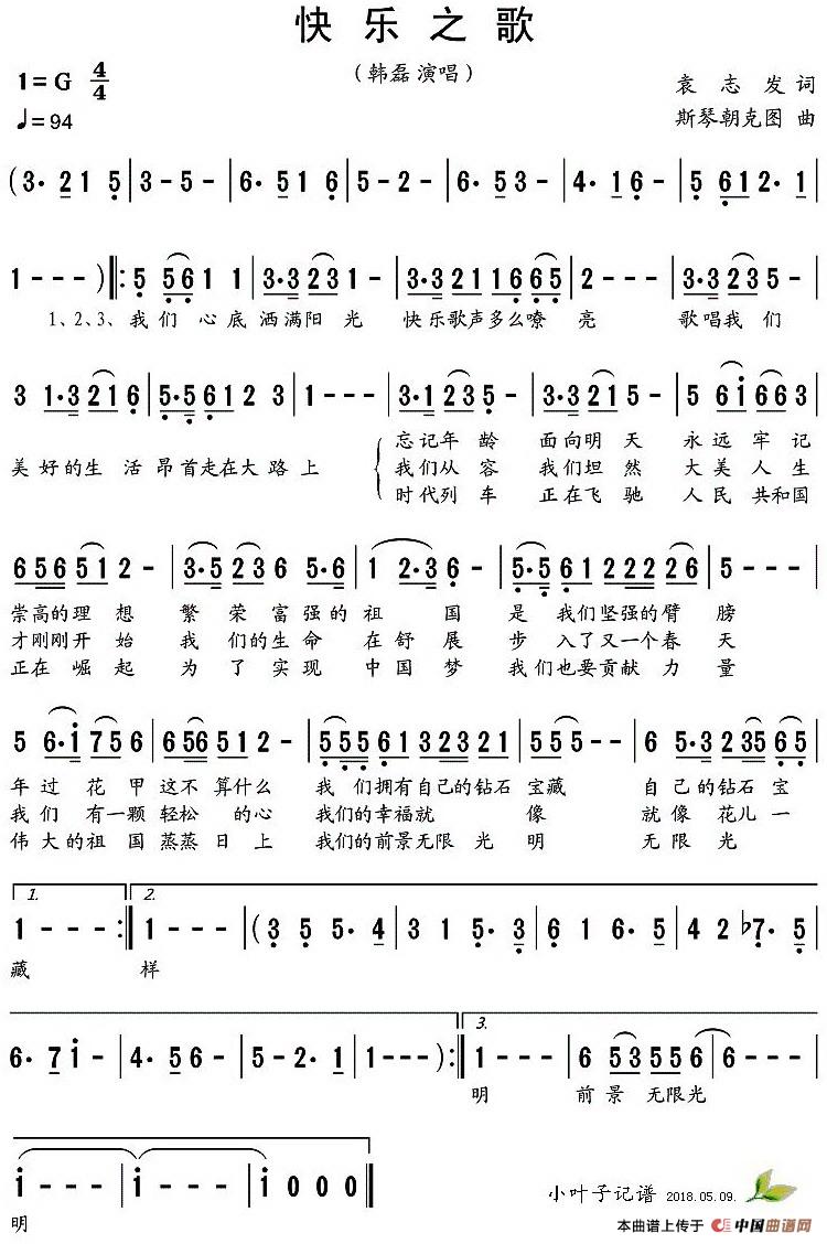 快乐之歌简谱 袁志发词 斯琴朝克图曲 谱友园地 中国曲谱网
