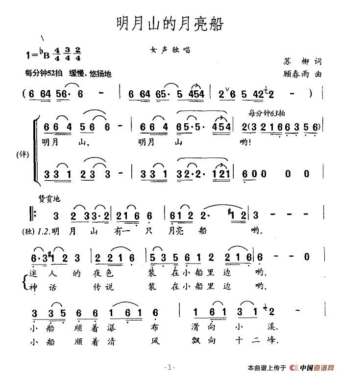 明月山的月亮船简谱 秋叶起舞个人制谱园地 中国曲谱网