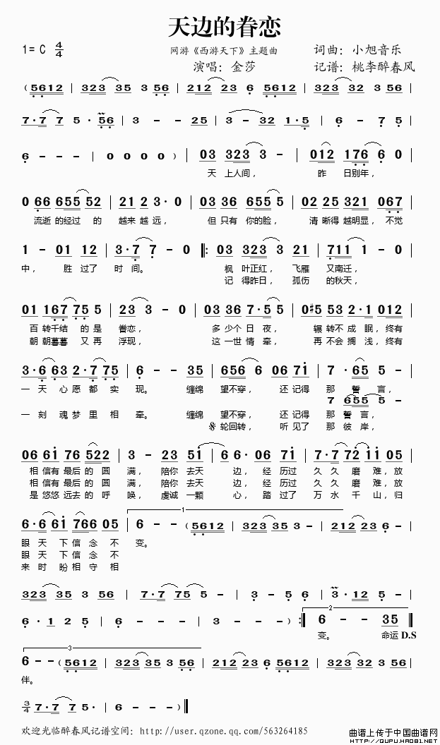 天边的眷恋简谱 网游 西游天下 主题曲 桃李醉春风个人制谱园地 中国曲谱网