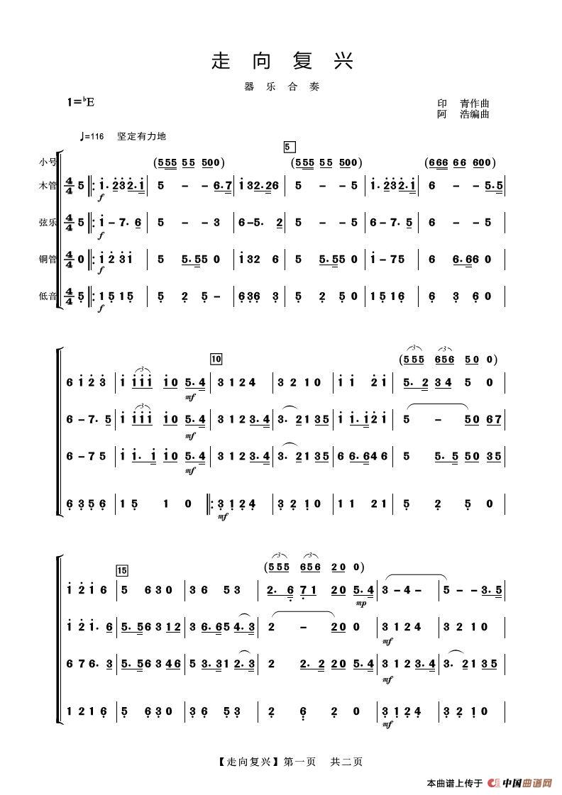 走向复兴合唱谱 混声四部简谱 中国曲谱网