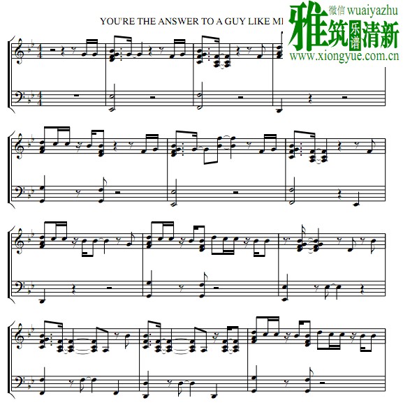 你是答案钢琴谱 钢琴弹唱 器乐乐谱 中国曲谱网