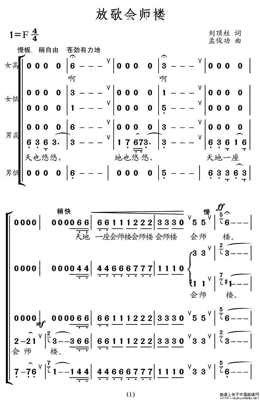 放歌会师楼简谱 交响合唱 刘顶柱原创曲谱专栏 中国曲谱网
