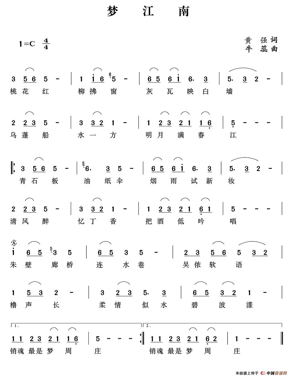 梦江南简谱 黄强词 牛蕊曲 民歌曲谱 中国曲谱网