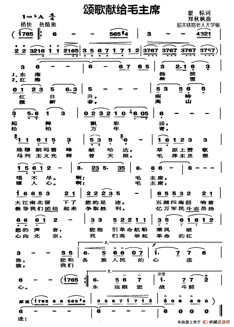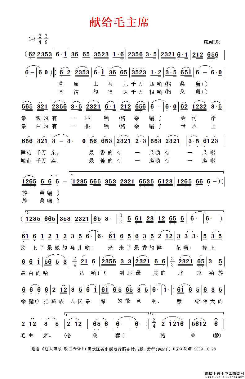 献给毛主席简谱 民歌曲谱 中国曲谱网