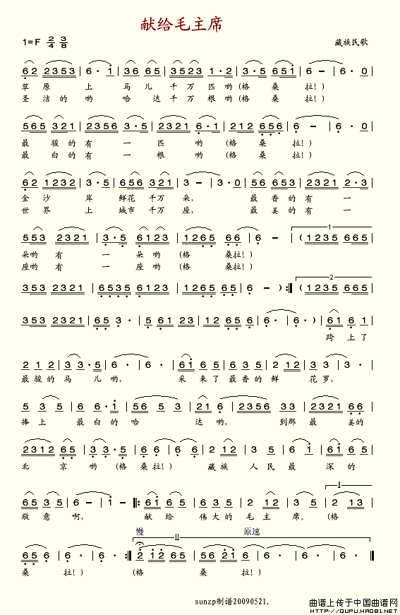 献给毛主席简谱 sunzp个人制谱园地 中国曲谱网