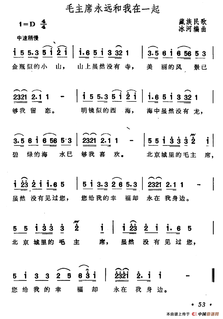 毛主席永远和我在一起 藏族民歌 冰河作曲